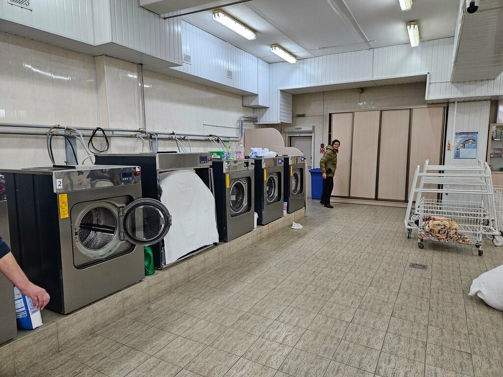 The machines wash and dry well, the prices are reasonable. Among the disadvantages, I would call the lack of waiting seats and trolleys for transporting clothes from washing machines to dryers: they have too large cells between metal bars, through which already washed socks and other small things fall right onto the floor, on which visitors walk in street shoes.