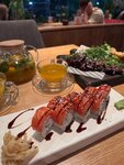 Пришли почти в 10 часов вечера, была очередь на вход, ожидание сказали минут 30, по итогу посадили за столик нас быстрее, минут через 20. Официанты часто подходят, долго ждать не приходится, официант Дмитрий очень вежливый и приятный, сразу нам представился и все рассказал. Блюда принесли ну очень быстро!! Пока отошли помыть руки, на столе нас ждал уже горячий чай🫖 Туалеты чистый, атмосфера приятная, декор привлекательный. Еда была приготовлена очень быстро и она была безумно вкусной!!!! Давно хотела поесть вкусные роллы и насладиться едой, в этом месте у нас это получилось! Вкусно было все! И цены оправданы, вернемся еще не раз! Самое вкусное место в Ялте (а мы были практически везде) спасибо😍 Ожидание того стоит!
