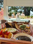 Ресторан «Чайка» — одно из тех мест в центре Ялты, которое не растворяется в море стрит-фуда, а по-прежнему держит марку и привлекает гостей, несмотря на плотную конкуренцию поблизости. Это панорамный ресторан с прекрасным видом, куда нельзя просто так забронировать столик — резервы не принимают (по крайней мере, раньше было именно так), и это лишь подчёркивает востребованность: сюда идут, стоят в живой очереди и ждут — потому что оно того стоит. Меню каждый раз радует качеством и подачей. Последний мой визит запомнился огромным бургером: сочная котлета, внутри листья салата, карамелизированный лук, плавленый сыр и чуть-чуть картошки фри — не как гарнир, а как штрих. Булочка — с хрустящей корочкой, сверху политой яйцом, что придаёт ей лёгкий блеск и плотность. Очень сытно, вкусно и на уровне. «Чайка» — это про стабильность, качество и вид на Ялту с правильной точки. Если окажетесь рядом — не проходите мимо, даже если придётся подождать столик.