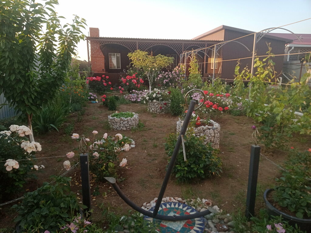 Новый гостевой дом, номера новые пахнут новизной и краской))) комфортные, сантехника новая. Гор и хол вода круглосуточно. Участок огорожен. Парковка на участке, машина всегда на виду. Просторная кухня, эл.плита, эл.чайник, микроволновка, холодильник, все исправно работет. Хозяева приветливые, общительные, с вокзала могут встретить на авто, приготовление обедов обсуждать нужно отдельно( готовит вкусно и по домашнему) Искала местечко потише и без постояльцев с детьми. И нашла. Сам поселок не большой до моря не далеко. В кафешках шашлык от 90 до 130 руб за 100 гр. Обеды в столовых от 250 и выше. Из минусов берег обрыв, и крутой спуск и подьем. Пляж этим летом был большой и чистый, приливов небыло.