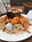 Хорошая Чайхана, очень даже приемлемые цены на блюда, ниже многих мест даже Хороший сет у них (Плов Самарқандский за 350₽) За 350₽- 450гр Хороший такой калорийный Плов на заметку с большим количеством мяса сверху, и прям мяса а не жир всякий. Долька лимона сверху и одно перепелиное яичко 👌 Так же салат имеется и чай на выбор Зелёный или Чёрный Чисто и Уютно, советую посетить не пожалеете 👍