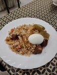 Брали шашлык из курицы, баранины и говядины, каждый был вкусный и сочный. Также брали жареный лагман, тоже довольно вкусный, но распробовали не сразу. Чай подают с узбекским сахаром ( Нават). Персонал очень улыбчивый и простой в хорошем смысле.