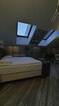 Двуспальных кроватей и матрасов двуспальных нет в стандарт номерах. Парой тут вообще не кайф путешествовать. Супер маленькие комнаты на мансарде и микродуш в котором не развернуться толком. Вы проснетесь в 6-7 утра от лупящего в глаза света который почему то не потрудились закрыть ничем. Просто белая прозрачная штора-жалюзи. Чайника нет, холодильника нет, тумбочек нет. В туалете вы не расслабитесь, тк нет нормальной двери, а есть только стеклянная перегородка рядом с кроватью. То есть вы будете слышать довольно ясно как тот с кем вы едете делает все свои дела. Завтрак-а здании напротив, не идите туда в тапочках. И да, из меню завтрака вы сможете заказать всего ОДНО блюдо и один напиток. Там есть и блюда из яиц и каши и сырники. Но второе блюдо за отдельную плату.Еда нормальная. Не плохая и не вау. Вряд ли вы что то не доедите или не станете есть. Тв надо настраивать КАЖДЫЙ раз как включаете, настройки сбрасываются. Вещи поставить некуда (сумки дорожные, чемоданы в комнате нет шкафа и полок) Из плюсов: заморочились за дизайн, он сложный но не скажу что изысканный. На мой вкус по крайней мере. Дизайн в заведении где завтраки интересный. Чистота идеальная. Нет нигде плесени, пыли, грязи, брызг засохших, пятен. Итог: брали на три дня, но выселились на следующее утро. Тут более менее нормально только по одиночке и то не вау
