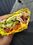 Шаурма ужасная,сверху куча майонеза,а дальше вообще нет,сухая.Мясо сырое,на вкус пропавшее, составу классической шаурмы не соответствует.За такую цену просто выкинула в мусор