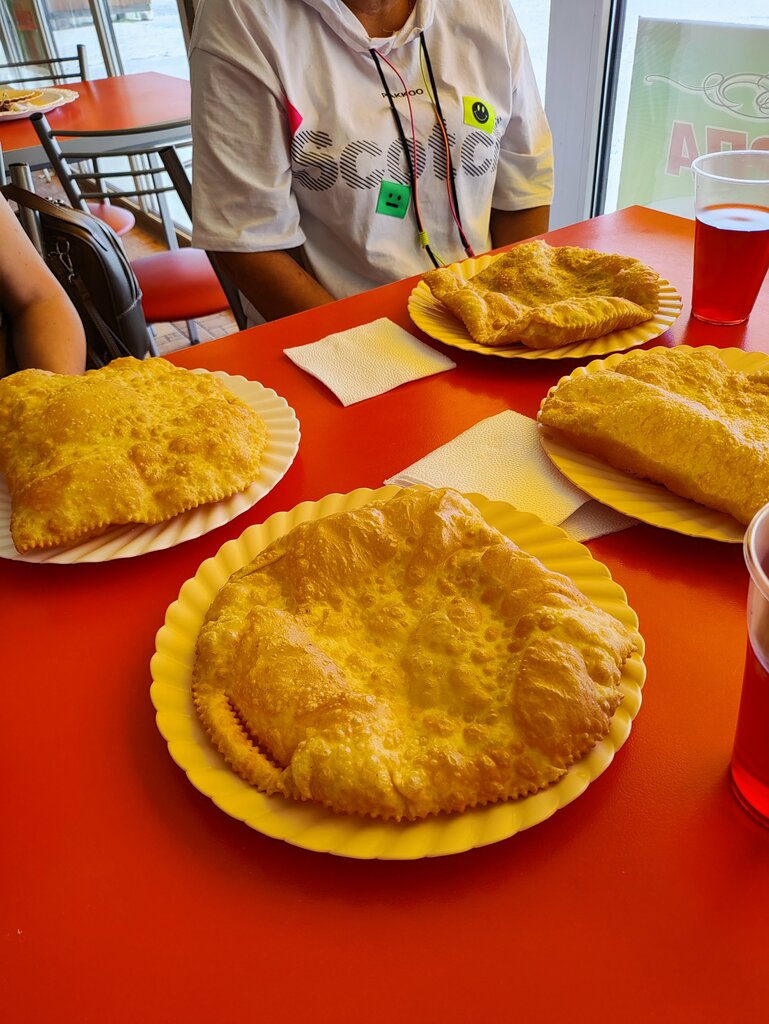 В сентябре 2025 в рамках экскурсии по Осетии, мы заехали в "Лучшую чебуречную". В кафе средних размеров зал, есть рукомойник, а в целом - домашняя атмосфера. Я взяла два чебурека - с капустой и сыром. Я только не предполагала, что они такие огромные 😂 Я их, конечно, не съела, а понадкусывала. Ещё откусила от чебурека с мясом. Что могу сказать: я вообще не любитель чебуреков, но здесь они явно достойные. И ещё - берите чебурек с мясом. В целом, ценителям чебуреков - рекомендую.
