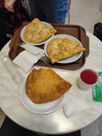 Брали чебуреки и сосиску в тесте. Сосиска не очень. По чебурекам, тесто прекрасное, по начинке, мясо так себе, не хватает соли, само мясо внутри сваливается в кучку тряпочек, как по виду, так и по вкусу, видимо фарш мажут ну очень тонким слоем и при готовке он не сцепляется, тобавьте соль и чуть больше фарша, увеличте стоимость рублей на 20 и ок. С сыром, хороший сыр, но как по мне пустоват чтоли, зелениб туда хотябы, ну и чебурек с вишней, это бомба, но тоже есть совет, вишню надо лучше перемешивать с джемом который вы добавляете, чтобы распределение было равномерным, а то сначала кислая вишня а потом шмаики сладкого джема. Компот вкусный. Скажем так, специально наверно не пойду, но буду рядом, заскочу точно, хочу пельмени попробовать.