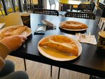 Хочется поделиться своим опытом посещения данного заведения. На пробу взяла чебурек с мраморной говядиной, 1000 островов и банан с клубникой. Начну с +: Самый главный "+"- это еда. -отличные чебуреки. Начинки повора не пожалели, мясо вкусное, с небольшим количеством бульончика (как и должно быть). Соли в умеренном количестве. Банан с клубникой на мой взгляд слишком сладкий (скорее всего джем покупной). - размеры вполне себе ( около 17-20 см). В меню есть мини чебуреки - в кафе чисто - есть возможность заказать на дом или на вынос - цена за 1н чебурек: 160-220р - есть разные размеры чебуреков, корн доги -заказ принесли в течение 13 минут Из -: -Хотелось бы доработать зал ожидания. Уюта из-за хаотично расставленных 3 видов сталов и 4 видов стульев нет никакого. -Было бы здорово, если бы на месте хотя бы были влажные салфетки и одноразовые перчатки, тк как руки до и после помыть не где. -негде помыть руки Итог: -В данном кафе отличные чебуреки, однако сладкие будут скорее на любителя. -В самом кафе не хватает места, где помыть руки или альтернативы в виде влажных салфеток и перчаток. -Зал ожидания хочется довести до ума. В целом за еду оценка 5, суммарно 4-4+.
