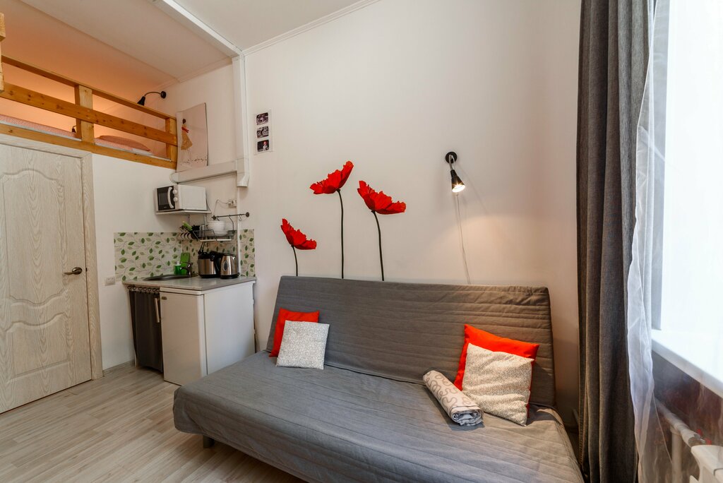 Апартаменты в центре, до метро ну, минут 15-20 ходьбы, использовал 1 раз общественный транспорт - остановка 5 минут пешком и до Адмиралтейства 20 минут на троллейбусе. Связались со мной предварительно, уточнили время прибытия. Заселили даже раньше времени заселения. Студия комфортная, все есть. Кухонная зона не большая, но есть и чайник, и холодильник, посуда, мультиварка, микроволновка и индукционная плита. При таком развернутом списке всего того есть , не хватило только "шампуров для шашлыка" - шучу. Тихо, спокойно, соседей почти не слышно. Можно спать на втором ярусе, можно на диване. Телевизор, интернет, все работало. Заселялся на 4 дня, вернусь еще.