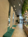 We went to a coffee shop on the way from the airport. Very spacious room. Delicious coffee and friendly staff. I liked the use of turquoise color in interior design. Desserts are delicious too. It was possible to charge the phone