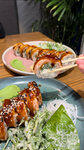 Вкусно! В основном заказываем доставку роллов. Сегодня решили поужинать в ресторане на левом берегу. Свежее, подача аккуратная, быстро и очень вкусно 😋 На первом этаже приятнее сидеть, чем на втором, так как звук хлопающей двери ведущей на кухню отражается по потолку и все время привлекает внимание 🫣