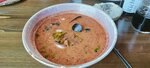 Заказали том-ям и очень были удивлены. Во первых ингредиенты такие как и должно быть, во вторых порция большая, как в Тайланде. По Омску, в этом заведении, самая честная порция этого блюда. Интерьер отличный, меню хорошее. Кофе к стате такая кружка, тоже надо постараться, что бы выпить всю. Заказывал капучино, цена как и везде по городу, а объем больше. В меню большой выбор азиацких супов, объязательно вернусь, что бы попробовать их. Так что твердая пятерка, рекомендую к посещению.