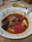 Может я конечно немножко переевшая везде вкусной еды, но мне в этом кафе было невкусно абсолютно. Заказывала жаркое с грибами. Казалось бы, простое блюдо, которое испортить невозможно, но подали в большом количестве масле, плюс половина овощей и грибов была полусырой, а лук пережаренный. Я дома вкуснее приготовлю... Официант спросила у нас, как нам блюда, на что я честно ответила, что мне не понравилось. Больше она к нам не подходила)) Я надеюсь, что только жаркое у них такое невкусное и их рейтинг не просто так...