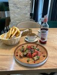 Мне очень понравилась обстановка , персонал . Так как я пришла вообще раньше открытия и меня серовно пустили 😂. Очень вкусный салат и кофе , на остальное я не успела . Поэтому придется приехать еще 😜