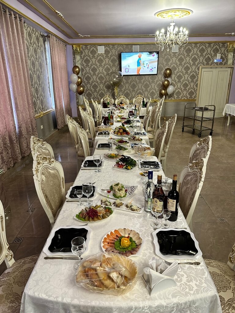 Отмечали свадьбу детям в маленьком зале. Понравилось всё: отзывчивая администратор Галина подготовила всё на высшем уровне, всегда была на связи для урегулирования необходимых вопросов! Отдельная благодарность певцу Парвину, спасибо, что разбавляли наше веселье своим талантом! Обслуживание на 5+ , мальчики официанты знают своё дело! Ну и конечно же замечательная кухня, спасибо поварам, всё было свежим и вкусным! Даже огромное спасибо работнику гардероба, очень приветливая женщина! Ребята мы очень рады, что обратились именно к вам, спасибо вам всем огромное за приятно проведённый такой важный праздник в жизни молодожёнов Екатерины и Артёма! Процветания вам и успеха!