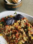 Всем доброго времени суток,я просто не помню когда в своей жизни настолько вкусно ела,не могу описать словами🤣👌🏽 Очень очень очень вкусный фирменный бургер со стейком,очень очень очень вкусная брускета с говядиной,и обалденный салат из баклажанов🤌🏽 фото только салата, потому что остального уже нет🤣