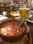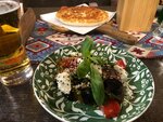 Из плюсов - атмосферное кафе. Салат из баклажан горчил и пережаренный. В грузинском - не вкусные, самые дешевые томаты, кинзы не почувствовалось. Морс вкусный. Одно блюдо не соотвестсвовало рецепту. Хинкали не пробовали. Вишенка на торте - тараканчик. Автоматом в счёт включен 10% сервисный сбор