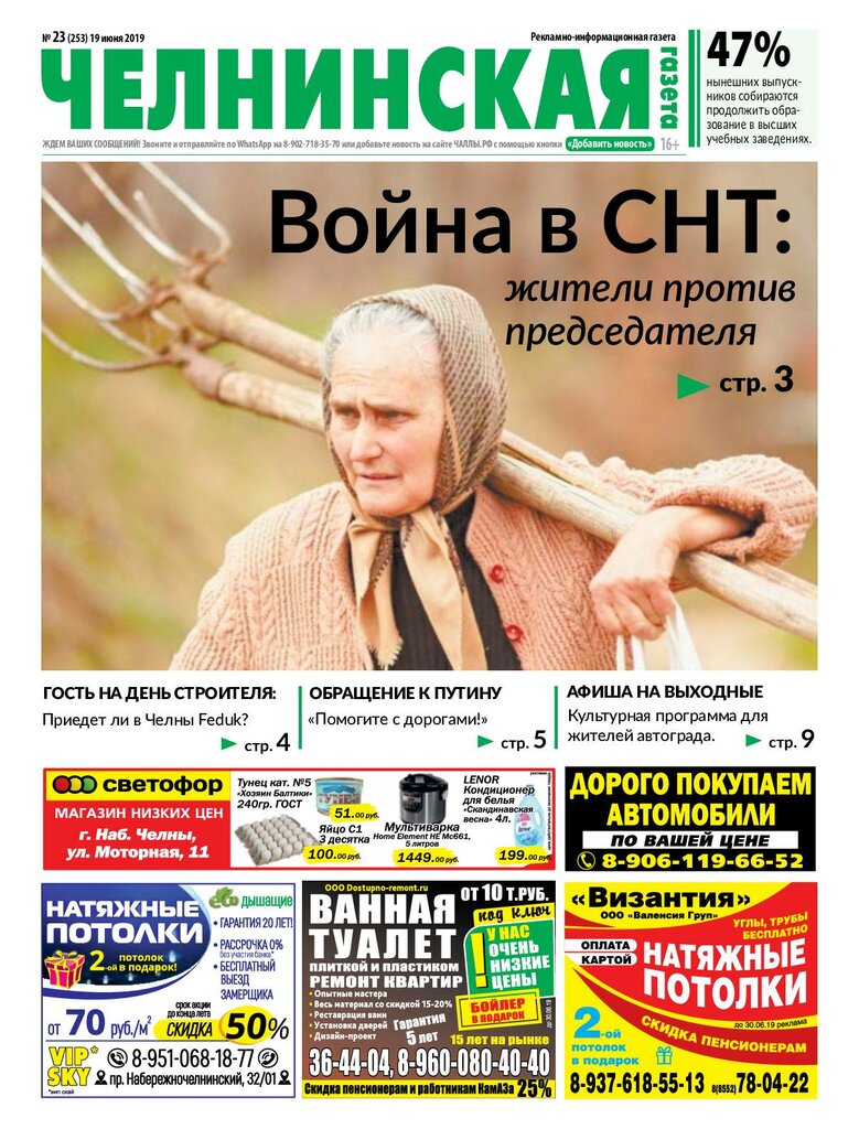 Размещение модульной рекламы от 360 руб. за 1 модуль. "Челнинская газета" единственная бесплатная газета в городе Набережные Челны, распространяется по почтовым ящикам.