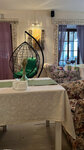 Праздновали выпускной. Поскольку это уже не первый выпускной, есть с чем сравнить. Еды много, вкусно! Шашлыки из свинины, куриного бедра и лосося - просто ах! Особенно из лосося. Официанты появлялись вовремя, вежливые симпатичные ребята. Это банкетный комплекс, где-то в соседних павильонах праздновали свадьбу и выпускной, но мы их видели мельком, в основном, когда шли на залив. Были какие-то посетители на веранде, надеюсь, мы им не сильно мешали. Они нам точно нет. Если отзыв будет читать руководство, то надо обратить внимание на стулья- некоторые шатаются. И на панно на стене- кое-где подклеить, обновить. А так - милый Прованс . Еще пластиковые шары на пластиковом шнуре на окне ужасные, не вписываются в стиль.