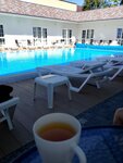 Отдыхали с 20 сентября, Нашли случайно,мимо проходили,другие варианты были хуже и дороже, Все понравилось,персонал вежливый,белье белоснежное,в номере халат ,полотенце ,чайник,4 ре кружки ,тарелка, холодильник, телевизор.На территории есть большой бассейн (вроде с подогревом,но по мне не так) Есть сауна(входит в стоимость) очень спасала, когда замерз,дети бегали греться,потом обратно в бассейн ,хочу отметить, что ребенок часа 4 с перерывами нырял ,без очков и маски,в других сразу глаза краснючие, очень переживала ,что и тут так же будет...нееет,все отлично! До моря близко, через магазинчики,все в шаговой доступности Скорее всего гостиница для семейного тихого отдыха,не для моих детей,но ни разу не было замечания в нашу сторону,не бегай,не прыгай,не ори и тд Из минусов,это слив в душевой, когда потекла вода в номер испугались,плохо что нет бортика,спасались полотенцем Р.S процветания вам и хороших отдыхающих!