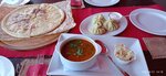 Шикарный вид на море! Кухня на 3: хинкали из баранины маленькие, не вкусные; харчо жидковат, маленькая порция; осетинский пирог не берите. Молочные коктейли, лимонад классные! Всё подали уже через 15 минут после заказа. Цена на блюда завышена, фото 2 листов меню приложила. Официант умничка. Детская комната - маленький загончик с игровой палаткой и страшными игрушками.