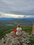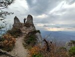 Начинается поход с канатной дороги. Поднялись, побывали в пещере желаний-завязали ленточку. Потом пошли по лесу 5-6 км. с остановками на смотровых площадках. Панорама великолепная:вид на плато Лагонаки и горы. Дорога заняла больше часа. Но это того стоило. Скала Чертов палец живописное место с прекраснейшей панорамой на горы Адыгеи. Гештальт закрыли.