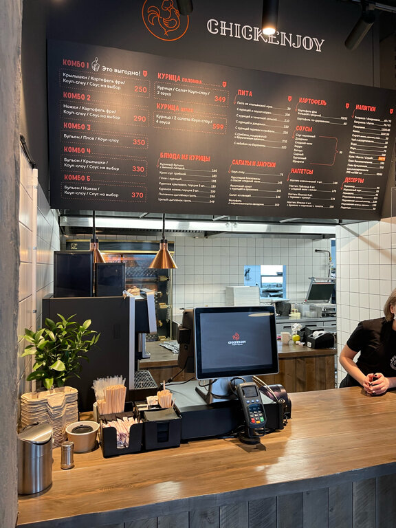Приехали туристами из другого региона. Гуляли по проспекту в поисках ужина, увидели ЧикенДжоу. Приятная обстановка внутри, чисто, уютно, спокойная музыка. Меню без излишеств, взяли комплексный и отдельно позиции с салатами. Еда действительно вкусная, сырная, по цене очень доступная. Хочется отметить как душевно мужчина трудиться, мне показалось, он хозяин. Так с душой хлебушек подал, сам протирает столы. Место действительно очень хорошее, советую.
