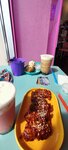 Комфортная атмосфера, персонала добрый и позитивный, объяснили какие блюда стоит брать, какие соусы подходят к корн догу, принесли еду быстро, вкус на любителя, но нам понравилось! Советую!