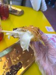 Решили с молодым человеком посетить данное место , я очень хотела ,так как видела много крутой рекламы и хотелось попробовать что-то новое для себя . Посещали заведение 25.05. 1. Так как мы первый раз , естественно мы не знали какая политика у заведения , как присесть за столик . Встретила девушка с распущенными розовыми волосами , поздоровалась и сказала что сейчас узнает про свободные места , после чего ее успел отвлечь курьер , а после другие посетители кафе ,мы все также стояли уже минут 5 в ожидании хоть какого-то ответа , посетителей обслужили и наконец-то вспомнили про нас , успешно сели за стол. 2. Ожидание кухни сказали 25 минут , что является нормой , особенно при полной посадке как было в этот день , но ещё мы заказали один напиток бабл орет. Перед нами сидел столик , которые пришли и сделали заказ позже чем мы , напитка у них было два , почему-то напитки им сделали намного раньше чем нам . Причем про наш напиток пришлось напомнить , как только я напомнила уже спустя 20 минут пребывания, о чудо его сразу же несут нам (видимо официант забыл просто про него) , напиток очень вкусный! Забыла ещё сказать что напиток принесли без трубочки , трубочки дополнительно на столе не было , пришлось идти к кассе , и просить трубочку . 3.Позже начала прибывать еда , первое принесли корн-дог, очень вкусный и сытный , позже прилетел почти буквально сырный таккпоки, прилетел он из-за спины моего молодого человека , без слов и эмоций . Позже мы заметили что ни приборов , ни трубочек , ни салфеток у нас нет (фото приложила), с учетом того что уже вынесено блюдо которое надо есть приборами ! После ПрОсЬбЫ принести все перечисленное их наконец-то принес уже другой официант с извинениями , спасибо !) Вообщем как-то не повезло нам в этот день совсем , обслуживание на полном 0! Такое заметное заведение , и такие некомпетентные сотрудники , я и мой молодой человек были очень расстроены данным визитом , еда и напитки были вкусными, спасибо)