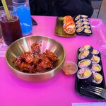 Заведение совершенно ничем не примечательное. Порции маленькие, их готовят от 40 минут! (Шок просто, обычный рис холодный подают с чуть теплой курицей). Кимпабы пресные, нори очень жесткое и долго жевать приходится. Плейлист кошмарный, извините, но слушать 3 часа одних SKZ и twice начинают вянуть уши. Помимо этих групп есть еще море других, в чем проблема составлять более разнообразные плейлисты? Больше не приду и никому из своих подруг не посоветую это место, лучше в Пипяо зайти и быстро вкусно поесть.
