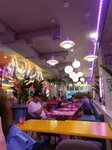 Очень необычное и уникальное место. Интерьер прикольный, лайк. Еда вкусная, но ценник будто бы чуть выше рынка, хотя за атмосферу будто бы стоит переплатить. Отдельно хочу заметить хороший уровень обслуживания. Персонал бодрый, радостный, видно платят хорошо) Респект официантке Варваре!