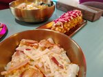 Посещаю кафе второй раз. В этот раз была не большая очередь, но ждали не долго. Была с дочкой. Попробовали новые для себя блюда. Корн дог - это любовь. Чиз рамен очень вкусный. Кимчи на любителя) Десерт пришлось ждать дольше всего) Напитки все вкусные)