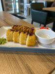 Лосось, угорь, сливочный сыр, огурец, авокадо, унаги соус, кунжут