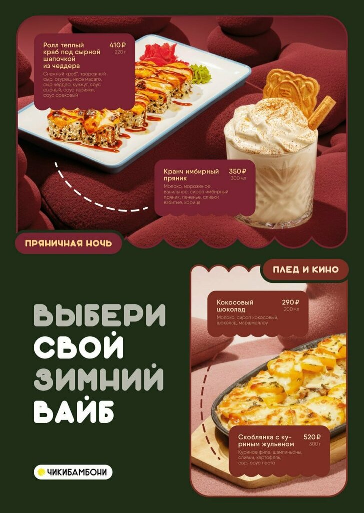Вкусные зимние новинки уже в Чикибамбони ❄️ Выбирай свой вайб этой зимой и пробуй наши вкусные новинки — здесь есть всё от горячих напитков...