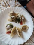Оценка плохая. Взяли пельмени 200 гр и 350гр. Пельмени попробовали только на язык, в первой порции 8 шт., а они размером с мизинец, во второй - 12 шт. Компот из сухофруктов не свежий. Вторую звезду поставили только за салат, порция была нормальная.