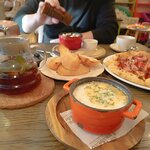 Почему то только сегодня впервые попала сюда 🤔 И просто очарована этим красивым, уютным рестораном. Претендент на любимый в городе 💯 Как-то здесь все идеально ❤️‍🔥 интерьер, сочетание цветов, свет, музыка....атмосфера лёгкая, комфортная...персонал очень гостеприимный, приветливый, позитивный...и вкусно 👌🏼 ньокки с томленной уткой в каком-то вкусном соусе, такое прям тающее, превосходно 👏🏼 пицца на тонком тесте с воздушными бортиками с поджаристой корочкой 👍🏼 и прекрасное завершение - десерт Павлова, свежайшая меренга с лёгким кремом, политые ягодным соусом с клюквой 🫶🏼 Отличный вечер 👌🏼 спасибо за чудесное настроение 💯