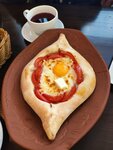 Эээ, генацвалэ..заходи, дарагой...)) Приятный ресторан с верандой в самом центре города. Интерьер щедро украшен буквально всем, чем можно..как в известном произведении...диван, чемодан,саквояж,картина,корзина,картонка и маленькая собачонка....восточная роскошь!) Подсветка неяркая, глазам удобно. В мужском туалете висит картина с изображением размера хинкали, можете сравнить с размерами того, что сейчас держите в руке...😁😁, над раковиной парный портрет грузинских актеров, сыгравших главные роли в "Звездных войнах" ( а вы не знали?).В общем все необычное -в санузле...) Меню стандартное для ресторанов грузинской кухни. Подача достаточно быстрая, оригинальная раскладка. Блюда прямо скажем, недешевые, но очень вкусные