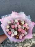 Просто бомбический букет в супер нежных оттенках вскружит голову любой барышне! Еще это и очень вкусно!!! Букет «Тайна сердца» Состав: - 600 г клубники в бельгийском шоколаде - дизайнерская упаковка - атласная лента
