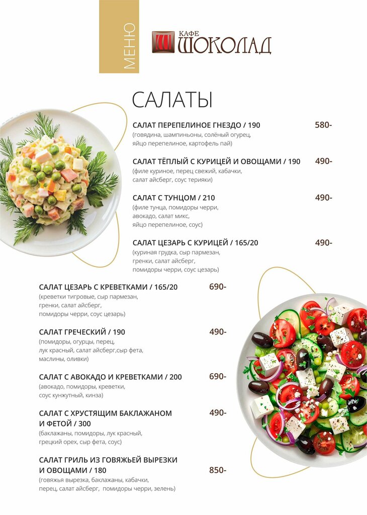 Очень хорошее место, еда вкусная, как по-домашнему, цены-более чем приятные)) Как по мне, так единственный недочет - это окна, через которые все видно с улицы, как отдыхаешь, как кушаешь..можно плёнку было бы прилепить, что б с улицы не видно, а из зала видно)).. но этот минусик перекрывается той атмосферой, которая есть в Шоколаде. Придя туда уже и не помнишь, что сидишь "как в аквариуме"🙈 , а простоинасоаждаешься явствами и своей компанией). Очень нравится, что есть тематические выставки, даже просто отдыхая-находишься как в галерее))