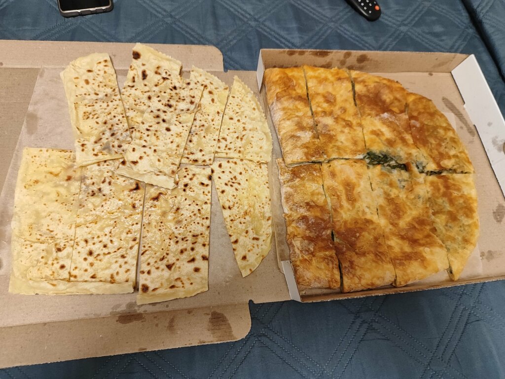 Брали два разных чуду, слоеный с зеленью, тонкий с сыром. Очень вкусно, сами чуду большие. Готовят немного долго, видимо спрос большой, но это скорее говорит о хорошем качестве, раз есть спрос