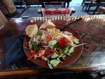 Честно говоря, просто увидели рейтинг и решили заказать здесь, т.к. рядом был наш отель. Заказали пиццу с телятиной, очень вкусное тесто, но для меня показалось пересоленой. Заказали также чуду с мясом, мне не понравилось, возможно потому что тесто сырое, чуду не свежее, мяса маловато. А также взяли сосиску в тесте, дочке понравилось. И еще дурум с курицей: большая порция, но много лука в ней.