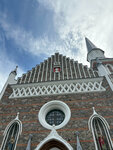 The hyper-beautiful red brick temple [such a masonry wall is worth a look!] in the Gothic style [ with an asymmetrical architecture (facade)] - "even rainy weather Didn't spoil the experience from what I saw [a kind of gingerbread a neo-Gothic house]".