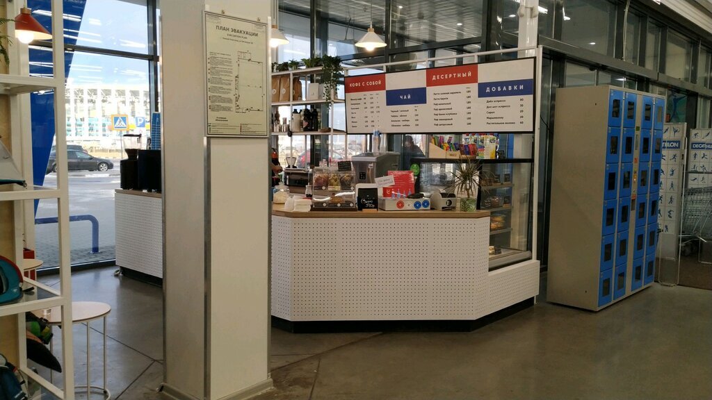 Вкуснейший кофе. Замечательный, вежливый персонал. Часто после покупок спорт инвентаря заходим насладиться стаканчиком кофеечка.