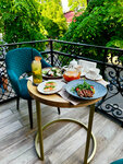 Побывав в данном заведении первый раз, понимаю, что второй вряд ли вернусь. Начну с плюсов. Очень классный интерьер, фотки получились действительно красивые, все заказанные блюда были вкусные и красивая подача. Но, к сожалению, все это затмило обслуживание. Во-первых, при бронирование по телефону никто не предупредил о том, что в 6 вечера начинается подготовка к квизу, который проходит каждую субботу (про сам квиз предупредили). По итогу, об этом сказали по факту, когда мы пришли. Подчеркну, что подготовка намечалась в 6 вечера, но ее начали в 5, если не раньше. Все бы ничего, но вся подготовка сопровождалось отвратительным звуком перестановки мебели, и пока мы не попросили включить хотя бы музыку, об этом из персонала никто не позаботился. Все можно понять, но когда ты приходишь в заведение отдохнуть, покушать и спокойно провести время, в итоге оказываешься где-то на складе или стройке. Во-вторых, персонал совершенно не обращал внимание на посетителей, нас было всего 3 на весь ресторан. Они матерились на весь зал, курили айкос и громко обсуждали рабочие моменты. Милая была только официантка, к сожалению не знаю имя. В третьих, возвращаясь к пофигизму от персонала, никто не позаботился о том, что было очень холодно, балкон был на распашку и дул сквозняк (начало марта, на минуточку). Приходя в заведение, с приличными ценами, хотелось бы прочувствовать атмосферу места, приятной музыки, но увы впечатления не из лучших. Никто даже не извинился за предоставленные неудобства. Поэтому прийти ради фоток и для приличия заказать лимонад- можно, но провести время с комфортом- вряд ли.