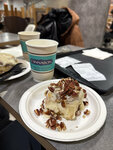 Вкуснейший миннабон с корицей, покрытый глазурью из сливочного сыра, двумя видами карамели: светлой и тёмной, а сверху поджаренный солёный арахис