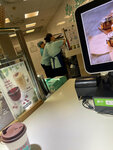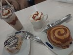Расположение у туалета и в проходимом месте — крайне плохо, тянет из туалета. Заказали Чиллат и Молочный коктейль. Сделано будто вообще не так, как делают в остальных их заведениях. Все, что осталось отличным — это синнабон и шоколадный ролл. Кассир приветливый, но прогоняла работников, которые не спешили принимать заказ. Франшиза есть франшиза. Неудачное место