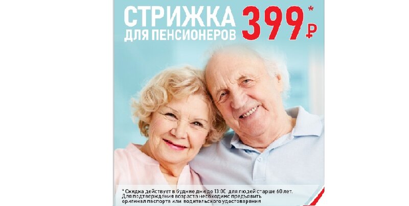 СТРИЖКА ДЛЯ ПЕНСИОНЕРОВ 399 рублей На модельные, барберские и стрижки у стилистов предоставляется скидка 100 рублей. Скидка действуют до 13:...