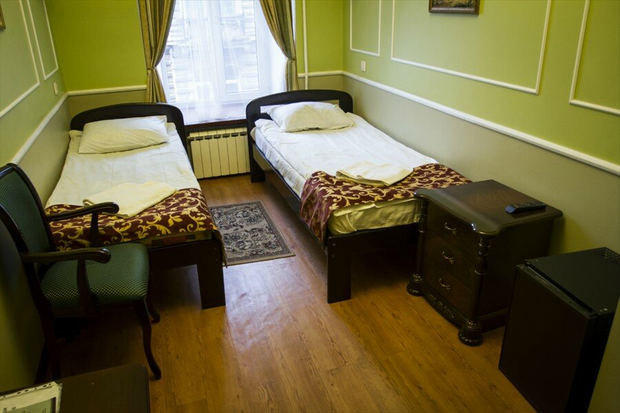 Отличное расположение для осмотра достопримечательностей.Если выбрать с завтраком,то там кормят на выбор:1.Гречка с сосиской или 2.каша овсяная.И блины с творогом , чай,кофе,сок к тем блюдам.2 дня можно питаться ,а если более ,то нет.3200 рублей брали за троих с завтраком,а без завтрака 3000 рублей. В номере тв,мини холодильник. Жили 5 ночей и один раз перед заселение принесли шампунь.Бумагу туалетную подносили и мусор выносили.Пол не мыли ни разу,под кроватью пыль 5 см.Кулер с водой в коридоре.