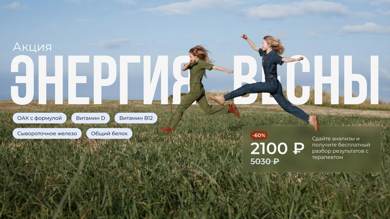 Акция «Энергия весны» до 28 февраля! "Энергия весны" — это пакет анализов, чтобы поддержать организм в затянувшейся зиме и понять, чего ему ...