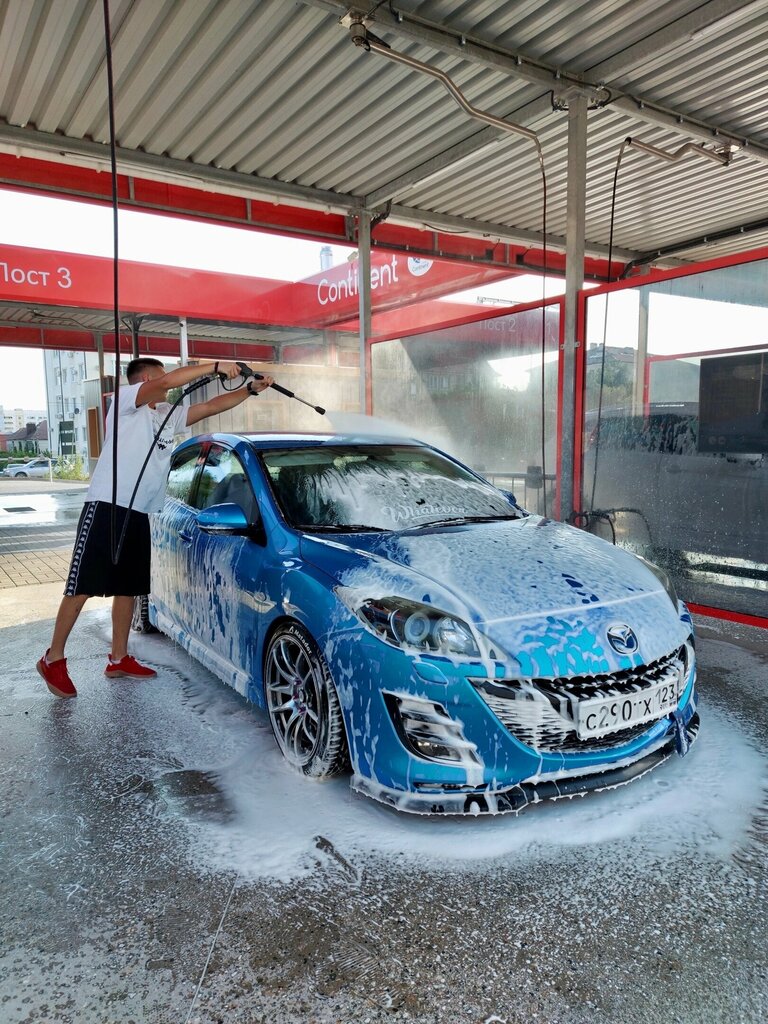 Очень хорошая автомойка, очень хорошая и густая пена, мне надо было только пыль сбить, в сезон не справляется с количеством машин, ждать пришлось не долго. Не понравилось, только две вещи. Первая нет мест для протирки автомобиля, а протираешь его на месте для пылесоса, но не кто не ругался когда я его там протирал, может так и задумано. Можно ещё установить приложение из Гугла Magic Cleaner и оплачивать из него.