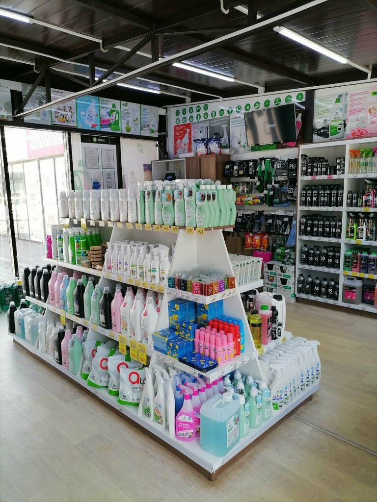 Маленький , но насыщенный ассартиментом магазинчик выбор оч большой средства дизинфекции , смс все для чистоты и антибакт обработки , для чистюль есть все....